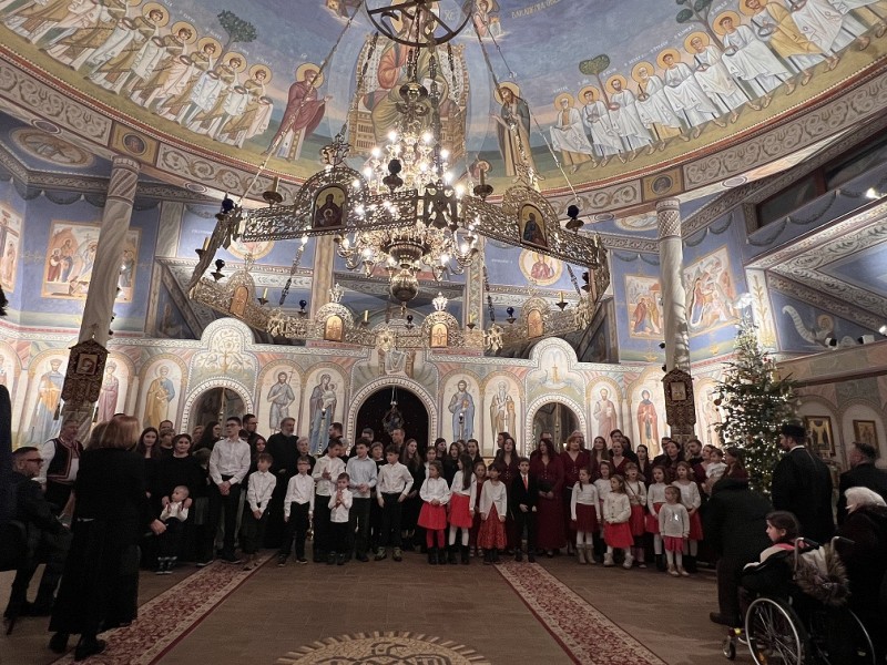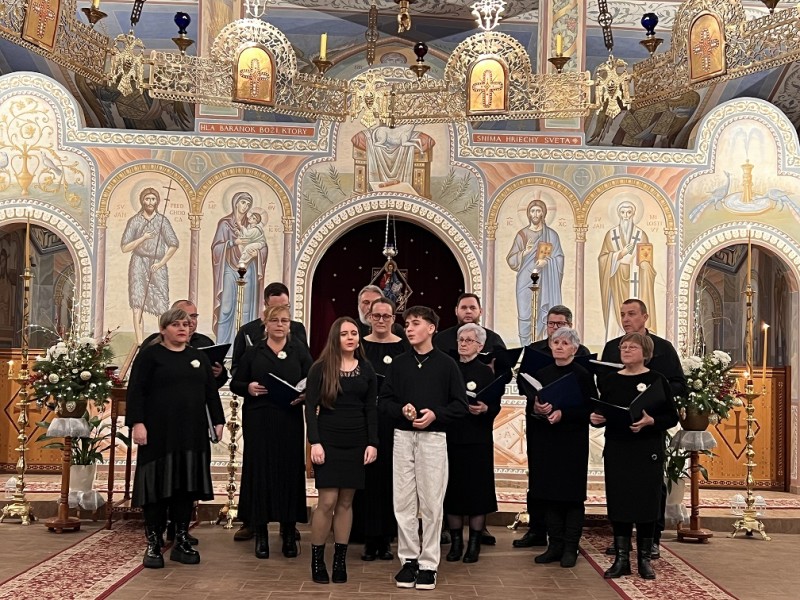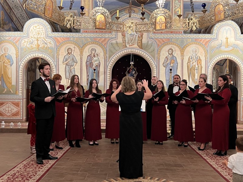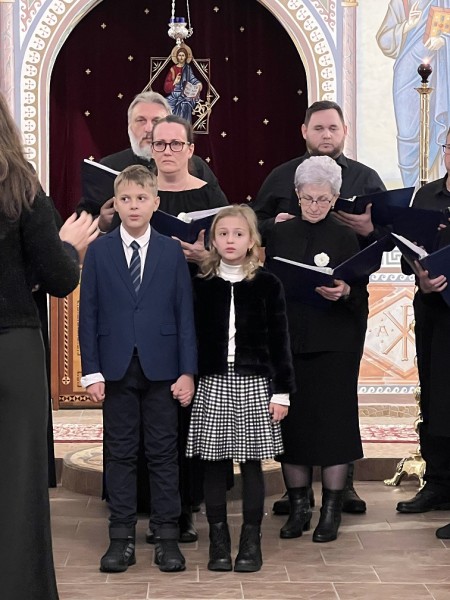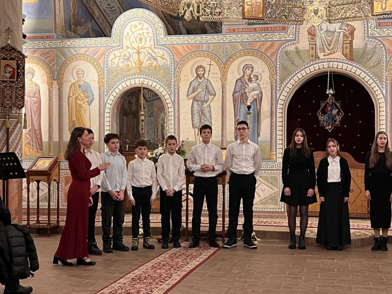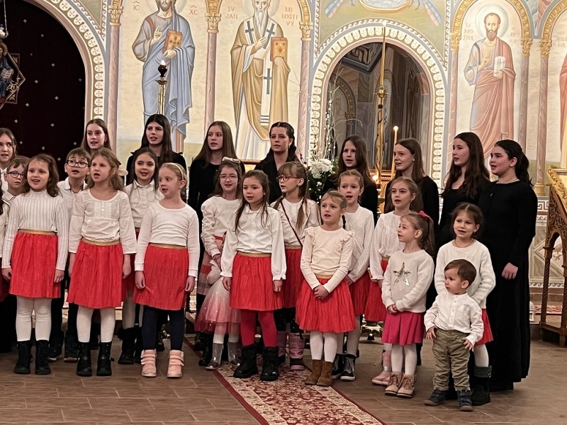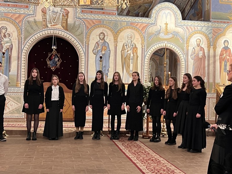 Detský spevácky zbor sv. Nikolaja Velimiroviča pod umeleckým vedením matušky Natálie Spišakovej.